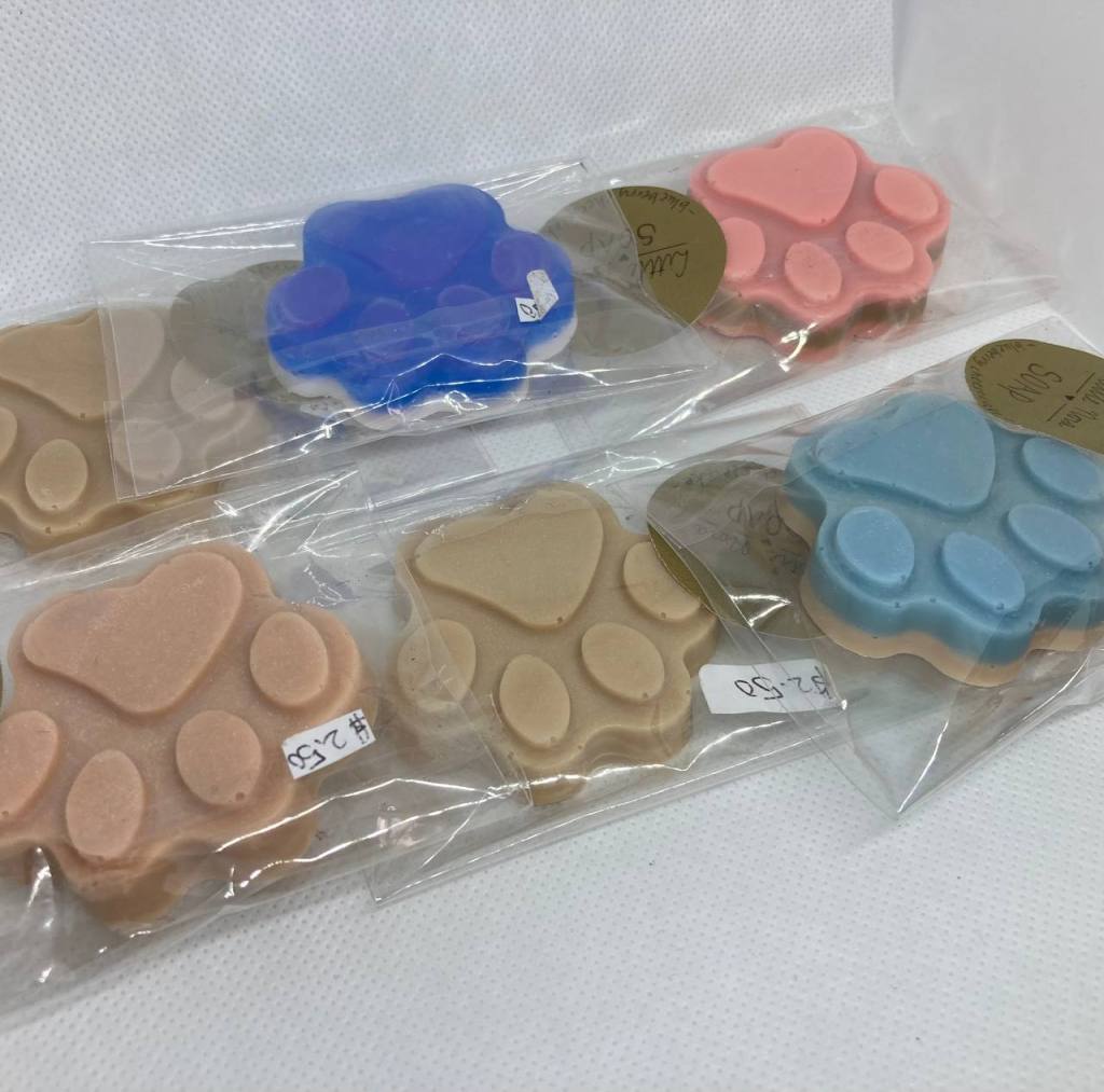 Very cute paw shaped soaps. Blueberry cheesecake scented. Only available at the markets and the pop up shop.